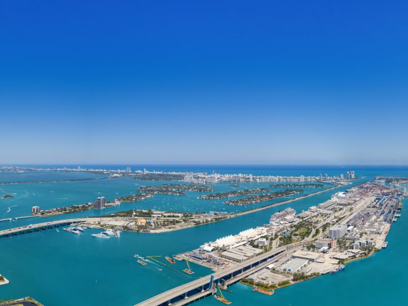 Unobstructed views of downtown, Miami Beach and Atlantic Ocean