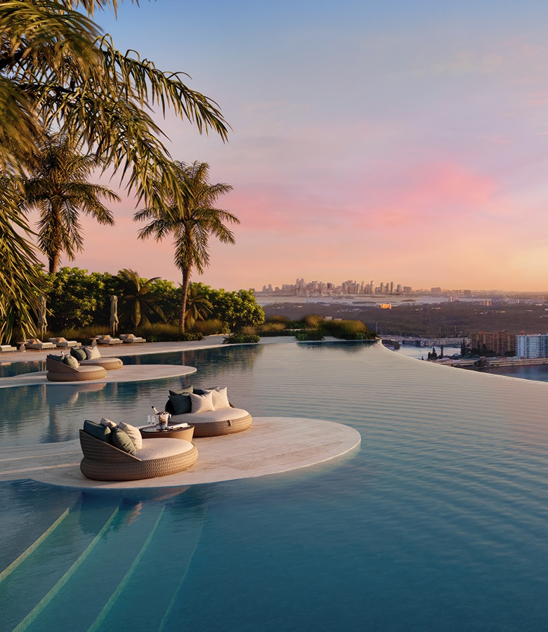 Sited on 4.7 acres along 435 linear feet of oceanfront, The St. Regis Residences, Sunny Isles Beach, Miami, are immersed in the infinite sequence of magnificent light and an ever-changing plethora of colors in every direction. The two towers, distinguished by their skyline-defining elliptical form, are set against the most breathtaking panoramas of the legendary Miami skyline and the endless beach scene to wake up to every day. This is where tranquility and urban energy become one-where inspiration transcends the boundaries of what’s possible. This is home.