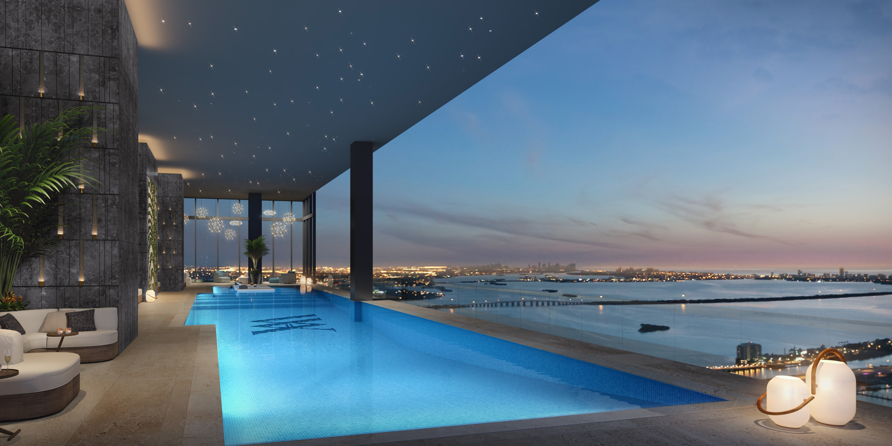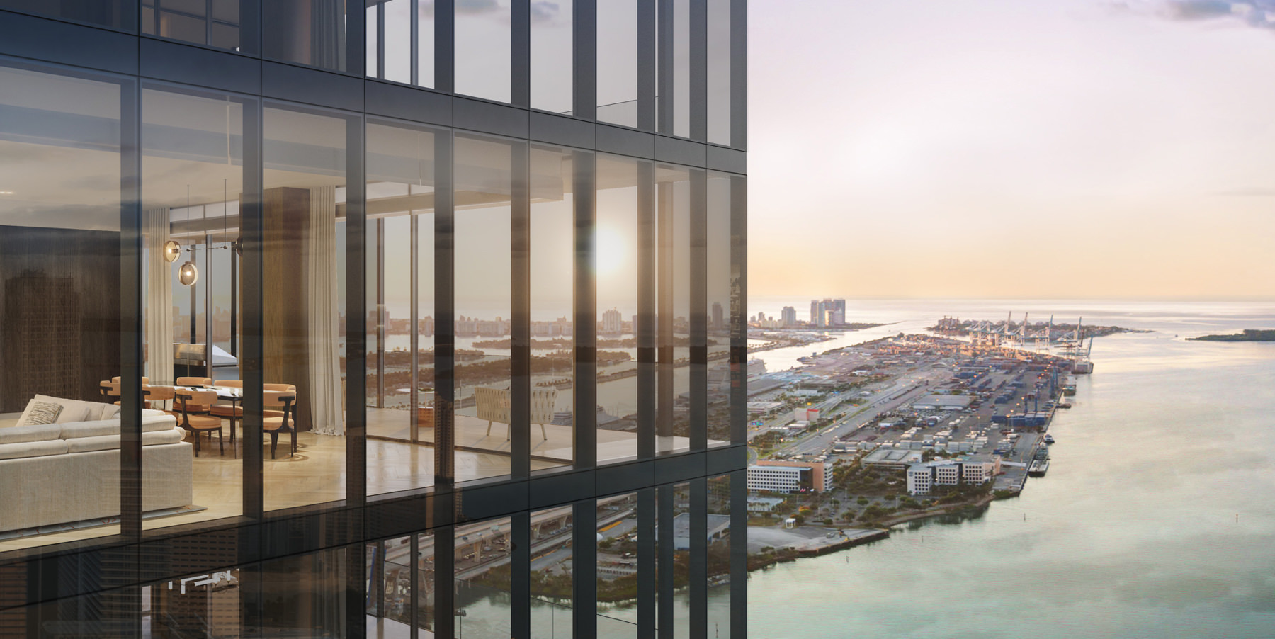 Unobstructed views of downtown, Miami Beach and Atlantic Ocean