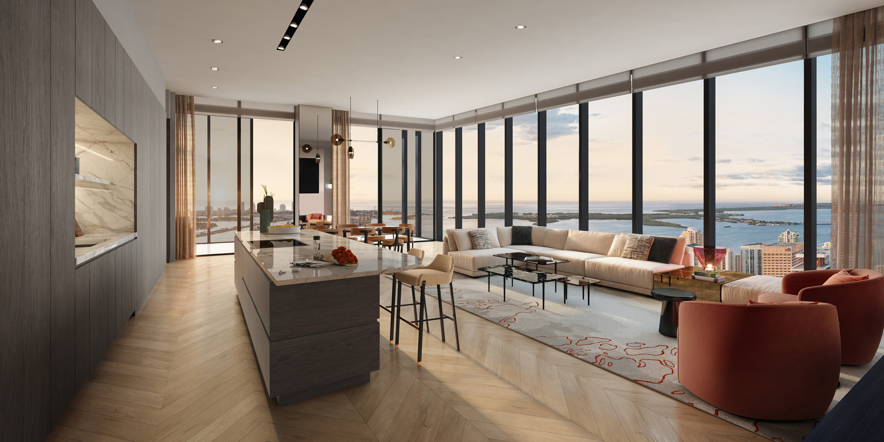 All residential interiors are designed by award-winning interior design firm BAMO